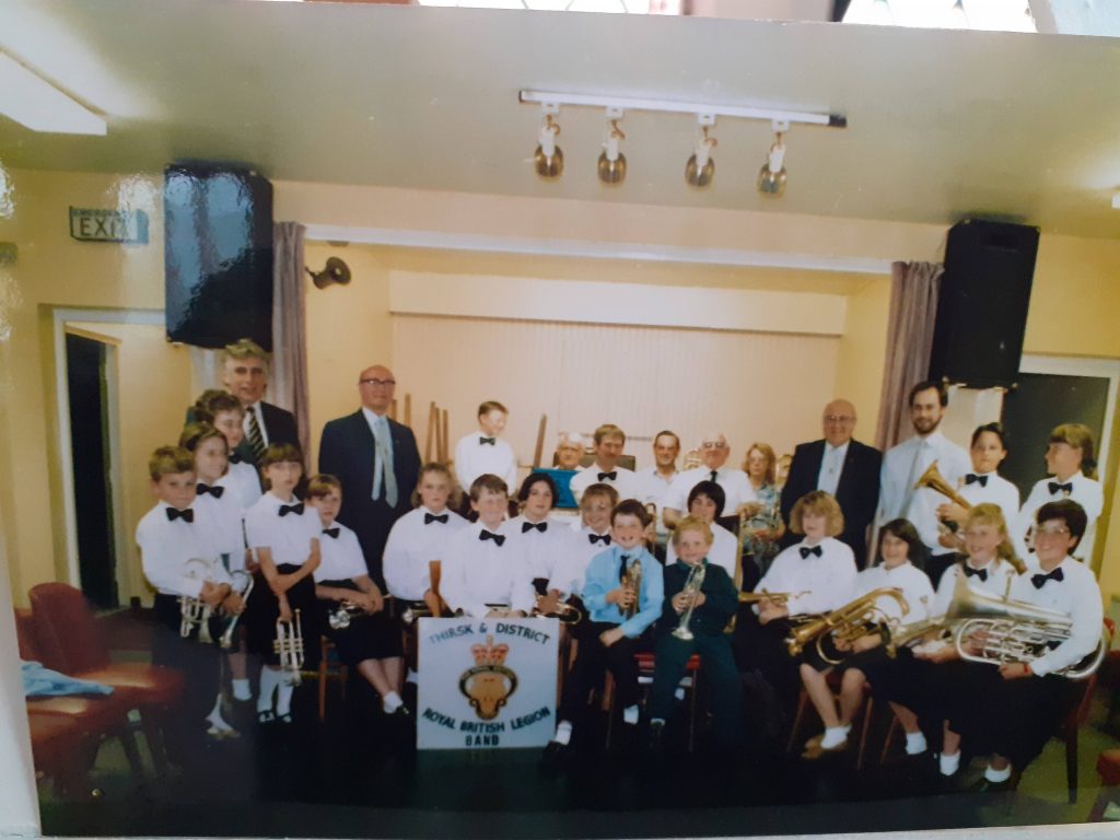 This was the Thirsk Royal British Legion Band in its infancy back in the late 1980s. The band is still going strong nearly 40 years since I founded it with the help of George Scaife (Back row 2nd left), Bob Petrie (Back row2nd Right) and my life long best friend Charles Clark (Sadly not in this picture). I don’t know who to credit this picture to, but it was a band member or supporter.